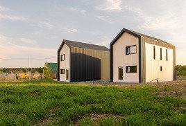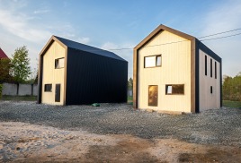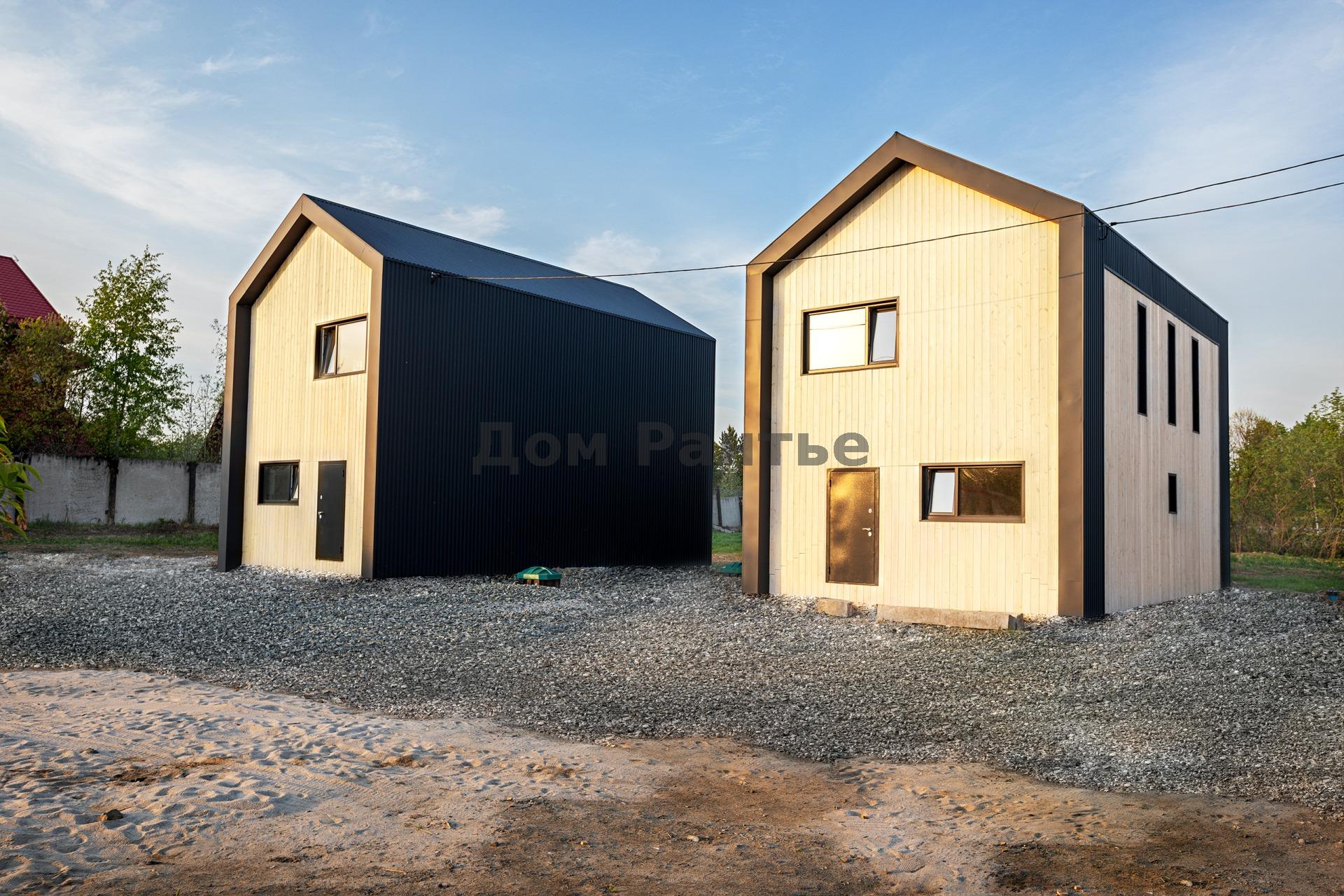 Дома расположены на соседних участках. Площадь каждого дома около 100 кв.м., площадь земельного участка к каждому дому около 6 соток. Построенны в современном и модном стиле Barn House. Дома построены на утепленном монолитном железобетонном фундаменте (плите) высотой 300 мм., стены выполнены из качественного газоблока ИНСИ с соблюдением всех технологических процессов, межэтажное перекрытие - также монолитная плита, высота потолков 2,75 м., стены оштукатурены и подготовлены под чистовую отделку, по полу выполнена полусухая стяжка. В каждый дом заведено электричество 15 кВт (есть возможность увеличения до 60 кВт), водоснабжение от скважины глубиной 40 м., установлена система комплексной очистки сточных вод "Термит Трансформер", на участок заведен газ. По дому выполнена электроразводка.